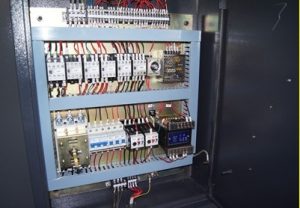 3. Elektrisk boks på venstre side. De betjente knappene er på maskinens knappebord. Strømbryteren, indikatorlamper er i elektrisk strøm.